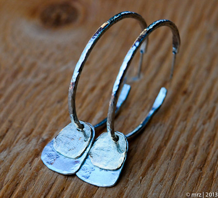 1 1/4" diameter sterling silver hand forged hoops with sterling silver textured tabs\ E003-$250